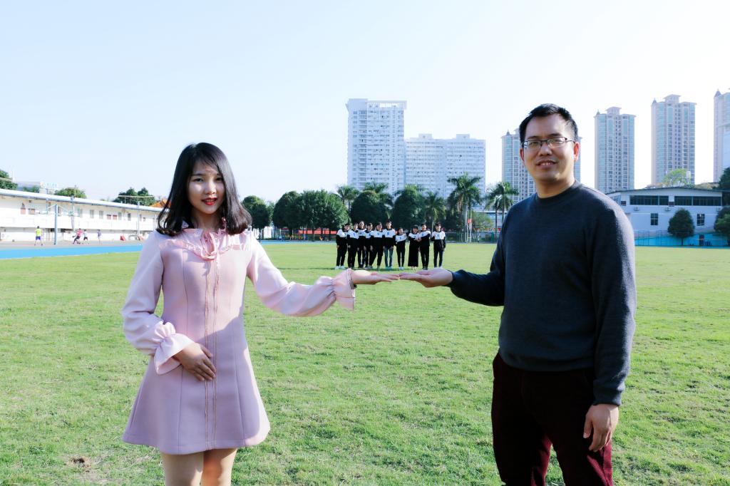 1603班辅导员邓雄月(左一)和专业导师梁建智(右一)