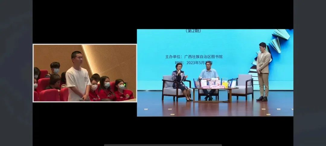 活动中,广西作协副主席,广西首批文化名家暨“四个一批”人才,曾获第六届、第九届广西文艺创作铜鼓奖、第十五届广西精神文明建设“五个一工程”奖蒋锦璐;广西民族大学二级教授,广西高校思想政治教育卓越人才刘国彬;FM950广西音乐台主持人,国家一级播音员布艺鹏(大鹏)三位广西全民阅读推广人作主题分享交流。