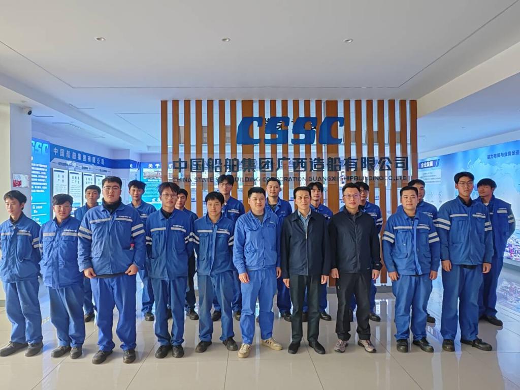 10月23日,智能制造工程学院副院长谢祥强带队前往中国船舶集团广西造船有限公司,开展专业调研活动,并亲切看望在此进行岗位实习的2023级现场工程师班学生。中国船舶集团广西造船有限公司人事主管李宇翔、中船舰客教育科技(北京)有限公司总经理田野陪同调研。