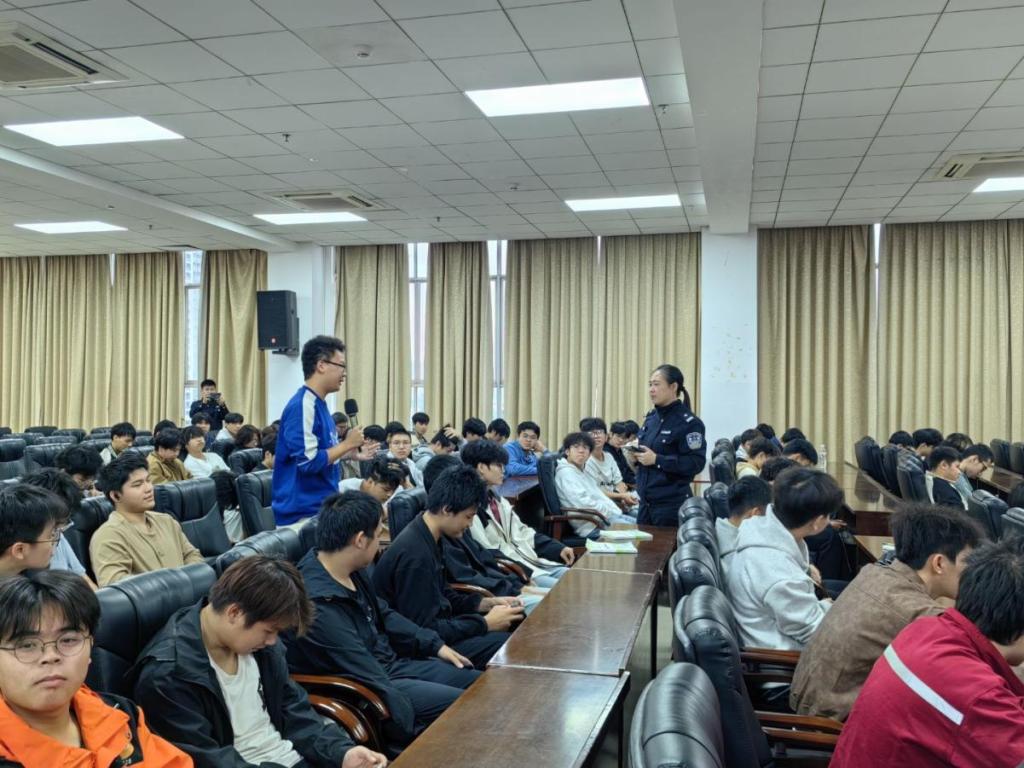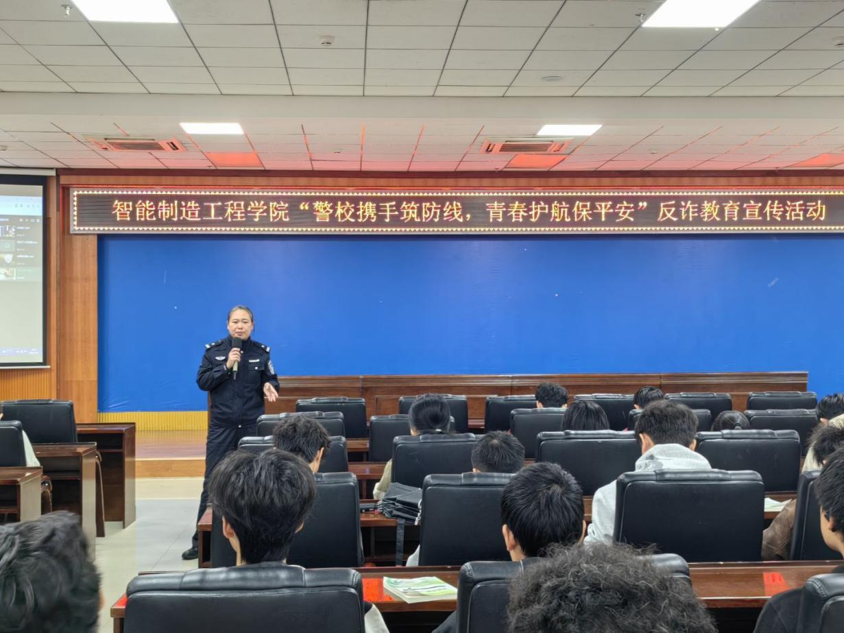 2025年11月4日下午,智能制造工程学院携手学校后勤保卫处、南宁市西大派出所,在科园校区图书馆六楼开展“警校携手筑防线,青春护航保平安”反诈教育宣传活动。活动聚焦电信网络诈骗防范,旨在提升师生反诈防骗意识与能力,遏制校园诈骗高发态势,营造安全、和谐、清朗的学习生活环境。