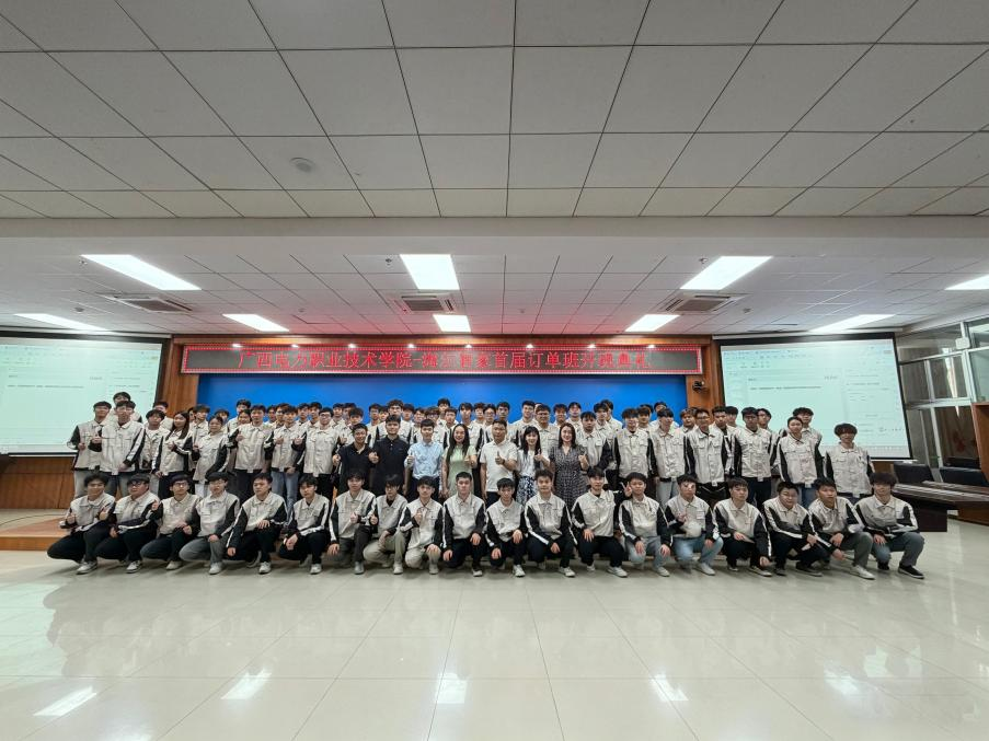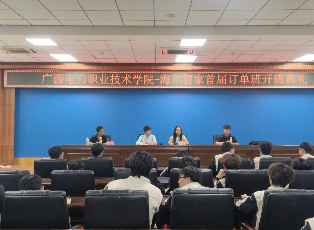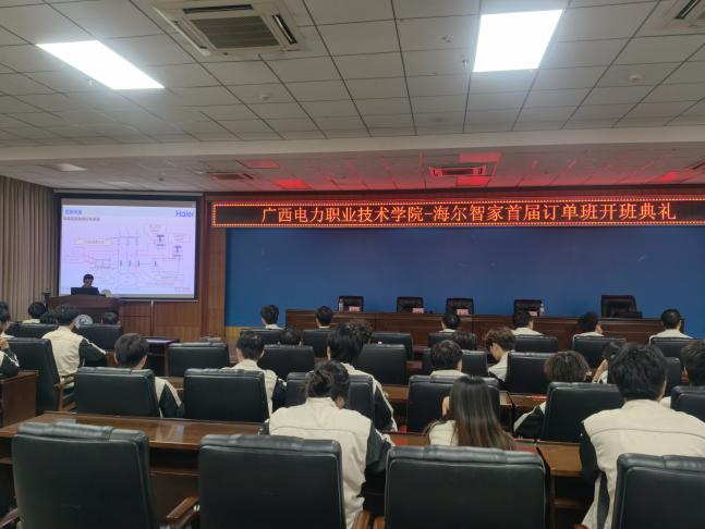 海尔智家(华南园区)招聘经理陈伟祥在仪式上介绍了企业的发展背景、核心业务及质量管控体系。他表示,海尔高度重视与院校的协同育人工作,此次订单班的开设是海尔精准培养未来所需人才,通过校企双元培养,帮助学生掌握岗位核心技能,实现从学生到企业人的无缝衔接。海尔将为订单班学生提供企业导师、实习岗位、专项奖学金等全方位支持,鼓励学员立足岗位、规划未来,在海尔平台上成长成才。