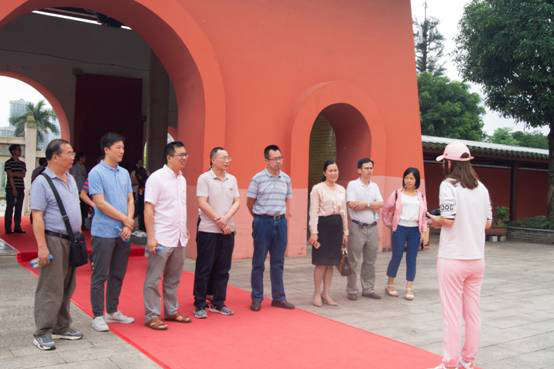 讲解员为我系教职工介绍孔庙整体概况