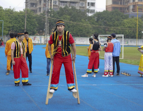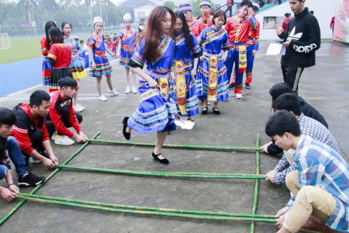开幕式现场中,从初赛脱颖而出的8个代表队神采奕奕、气势如虹地手拿五星红旗齐唱《我和我的祖国》、《广西尼的呀》歌曲进入比赛现场,观众们一片沸腾。随后,现场井然有序地开展了竹竿舞、踩高跷、踢毽子、板鞋竞速、背篓接绣球五项体育项目。比赛现场团委领导老师也参与其中,品味壮乡韵味,大家欢笑不断。最后,我系机电1812班青春梦之队、1803班和1804班的超越队奋力拼搏最终获得比赛的第三名和第五名的好成绩。