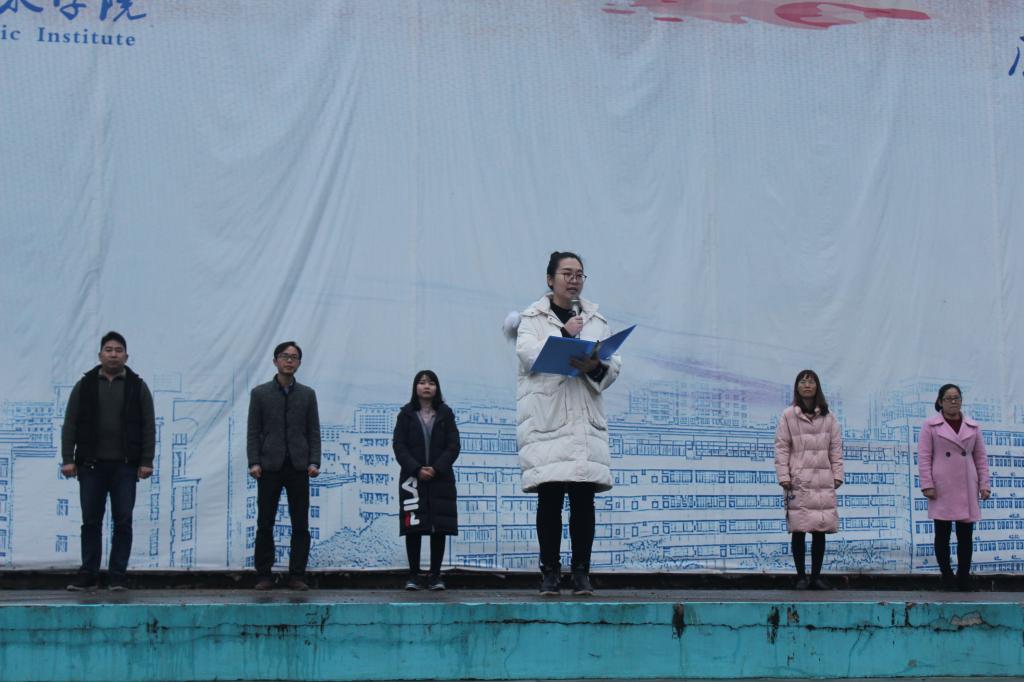 本次升旗仪式共分为三个议程。首先举行升旗仪式,伴随着庄严嘹亮的国歌,五星红旗冉冉升起,全体师生怀着自豪之情和对新学期的希望,凝视着飘扬的红旗。其次是我系党总支唐群副书记讲话,她从学生党团组织建设与管理、学生技能竞赛成果、心理健康教育、社会实践工作成果、专本衔接与对外交流、招生就业等方面肯定了2018年我系所取得的各项成绩。唐副书记部署了我系在2019年新学期的工作要点,希望在新学期里各年级各班要以3月学雷锋活动为契机,狠抓班级管理和班级建设,营造和谐氛围,争创文雅教室与文明宿舍,树正气、讲文明、促和谐,安全用电、不吸烟、不酗酒,自觉抵制不良风气,努力培养良好的思想品德,高举雷锋精神的大旗,明辱知耻,真诚奉献,使我系各项工作再上一个新台阶。第三项议程是颁发我系早读ppt制作获奖的同学,及元旦迎新晚会获得优秀演员的同学进行颁奖。庄严的升旗仪式点燃了新学期全体师生的希望,激励着大家在新的学期,不忘初心,砥砺前行。