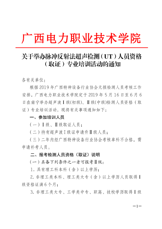 关于举办脉冲反射法超声检测(UT)人员资格(取证)专业培训活动的通知(1).pdf