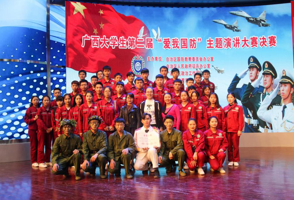 2018年11月10日上午8点30分,广西第二届“爱我国防”主题演讲大赛在广西大学举行。我系选送的作品《吃水不忘挖井人》经过激烈比拼,荣获三等奖。