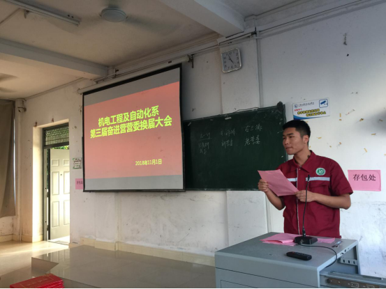 2018年11月1日16:30,我系奋进营第三届营委换届大会在2-307顺利召开。奋进营指导老师李冰红、辅导员曾文静、王纪坤、邓雄月及奋进营全体成员出席本次大会。