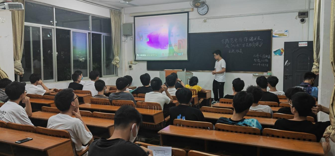 增强学生的电信网络安全防范意识,提高学生对电信网络诈骗犯罪的应对能力,智能制造工程学院2021级的学生于2022年6月5日19:40在一栋教学楼,开展了“防网络电信诈骗及“两卡”教育课”的主题班会,各班辅导员指导班会。