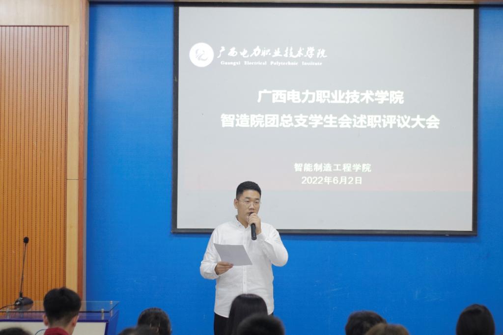 为强化学生组织职能与服务宗旨,提升学生干部工作责任感和价值感, 2022年智造院团总支学生会部门述职评议大会于6月2日在1教101多媒体教室召开。出席本次会议的有我院党总支副书记刘馥萍和团总支副书记闫锦涛、辅导员代表李洪汉老师及团总支学生会主席团成员。